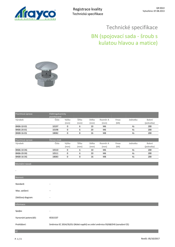 BN (spojovací sada - šroub s kulatou hlavou a matice)